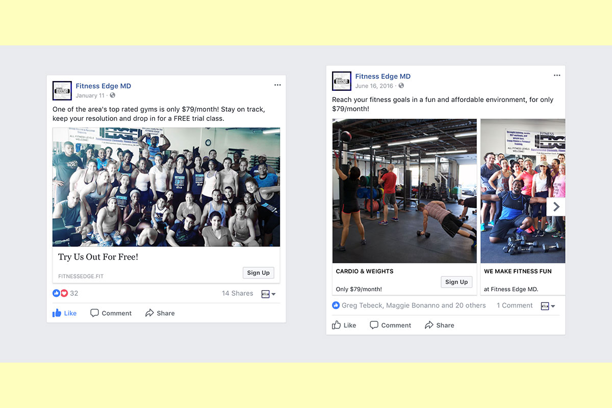 Fitness Edge MD, being a hometown gym, is very active on social media. They wanted to turn their social media presence into actual memberships, so they approached us for help. We have been designing, executing and tracking campaigns for them since 2017.