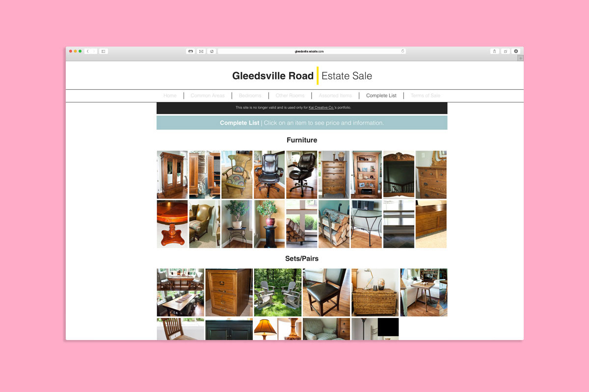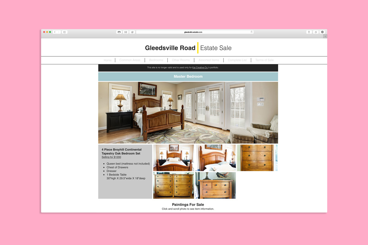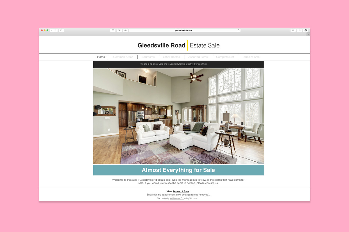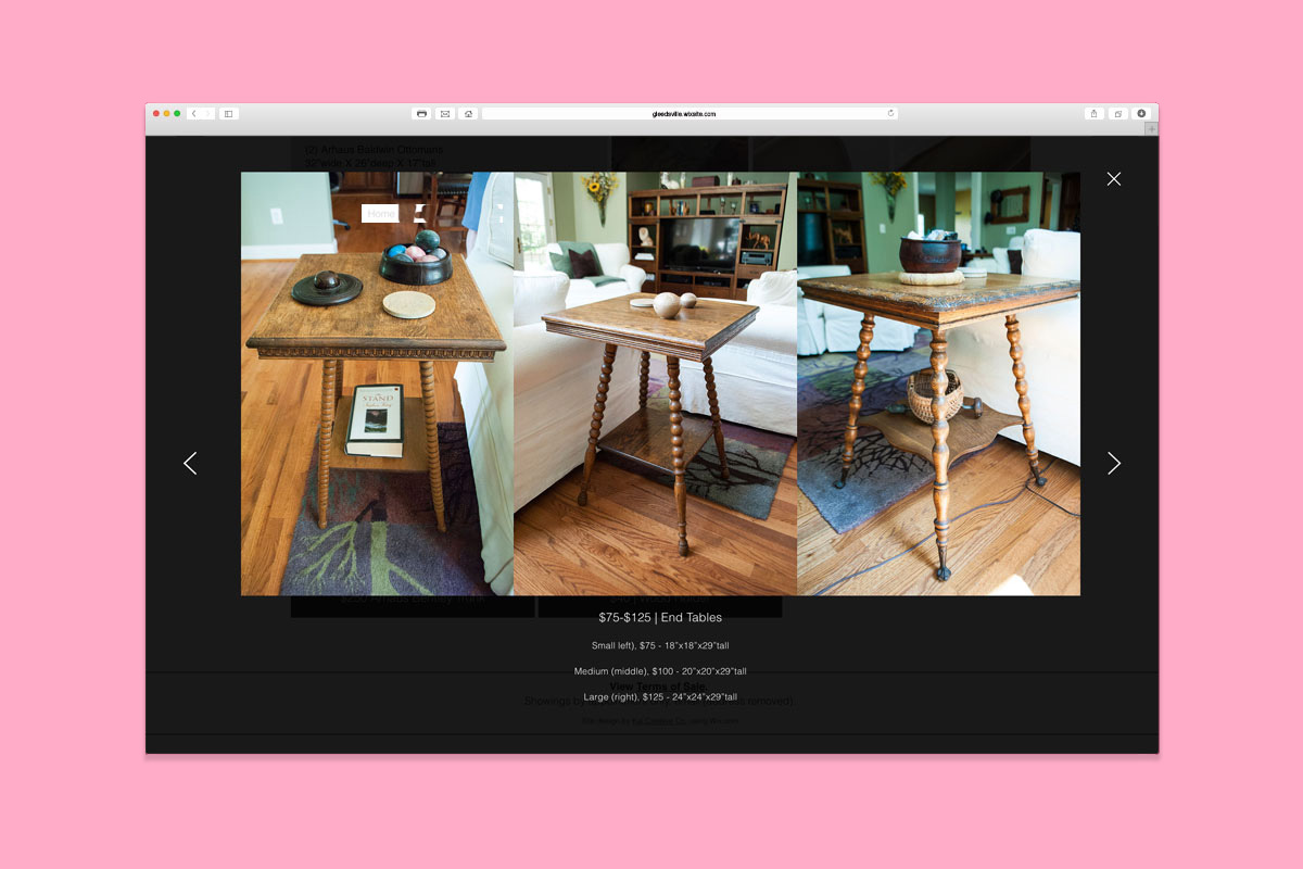 Seeing as the website was just temporary, we used Wix's free version and designed the layout ourselves. As a result of this beautifully laid out site, with minimal advertising except for social media and word of mouth, our client sold all of his items and kept 100% of the profit. We find this solution an amazing alternative to big-budget estate sale agents, with the whole process digitally-streamlined and little to no labor.